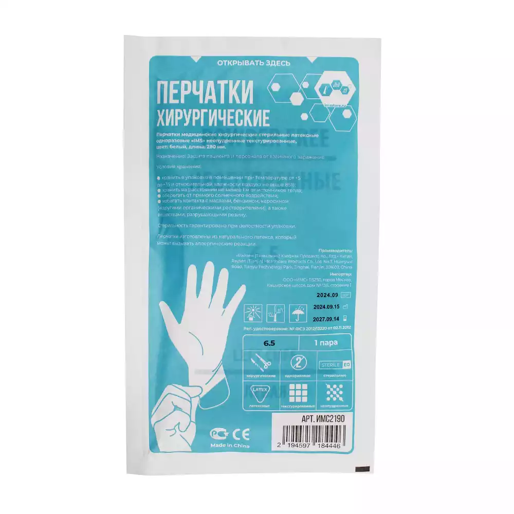 Перчатки IMS, размер L, нитриловые, вес 7,0 г/пара, неопудренные, текстурированные на пальцах, цвет голубой, нестерильные, упаковка 100 пар