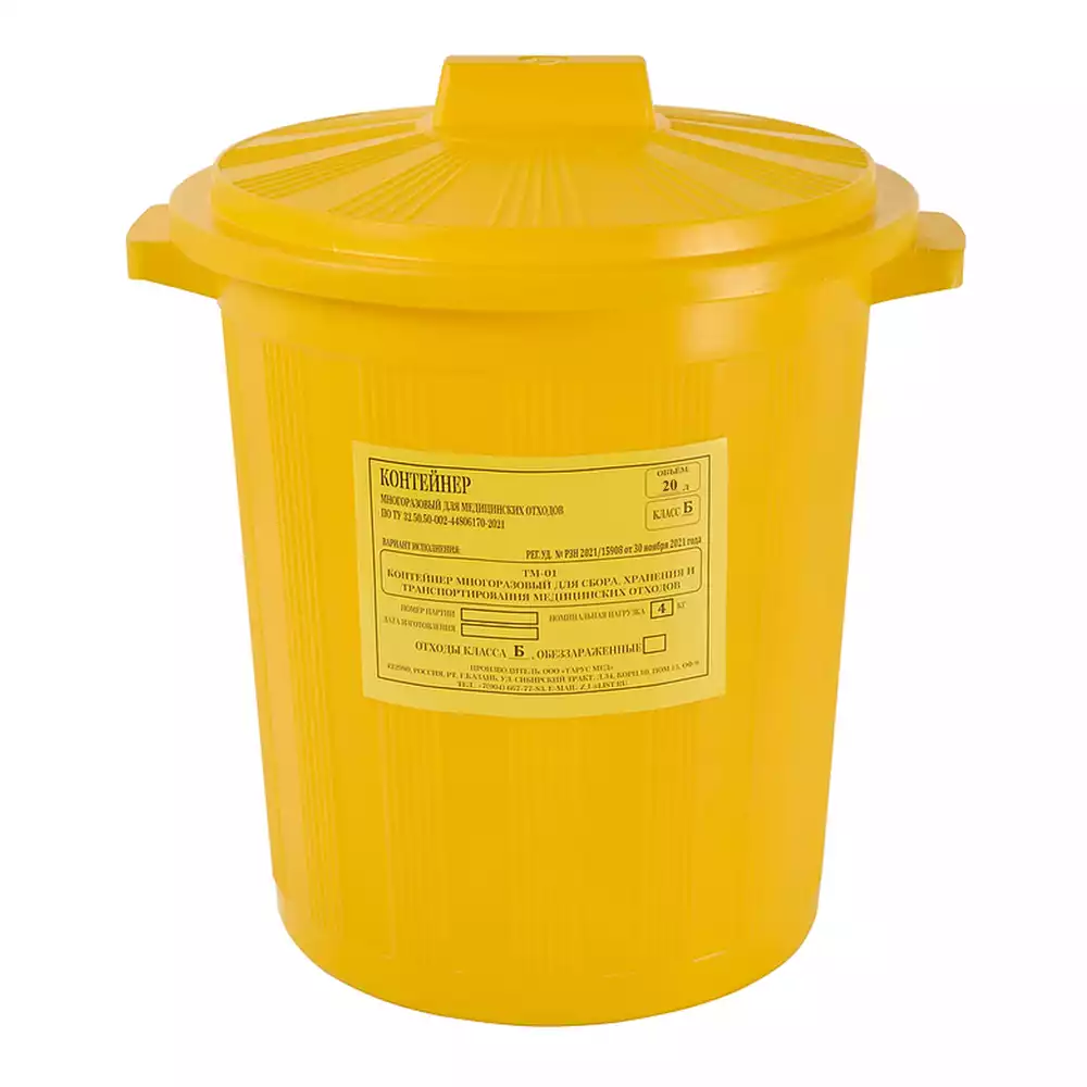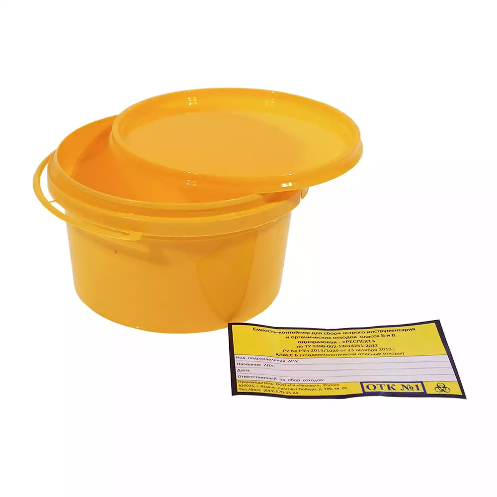 • Класс Б (желтый) – рассчитан на размещение эпидемиологически опасных твердых и жидких отходов, упакованных в полиэтиленовые пакеты.