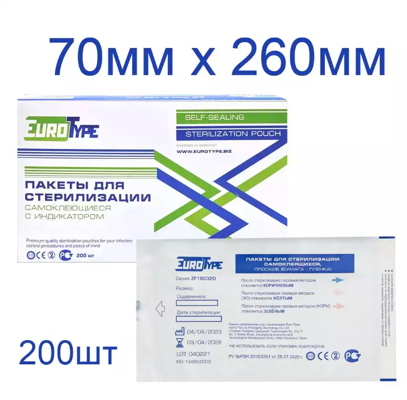 Самоклеящиеся пакеты из крафт-бумаги для стерилизации ПБСП-СТЕРИМАГ, 200*330 мм , 100 шт/упак, Медтест (РОССИЯ)