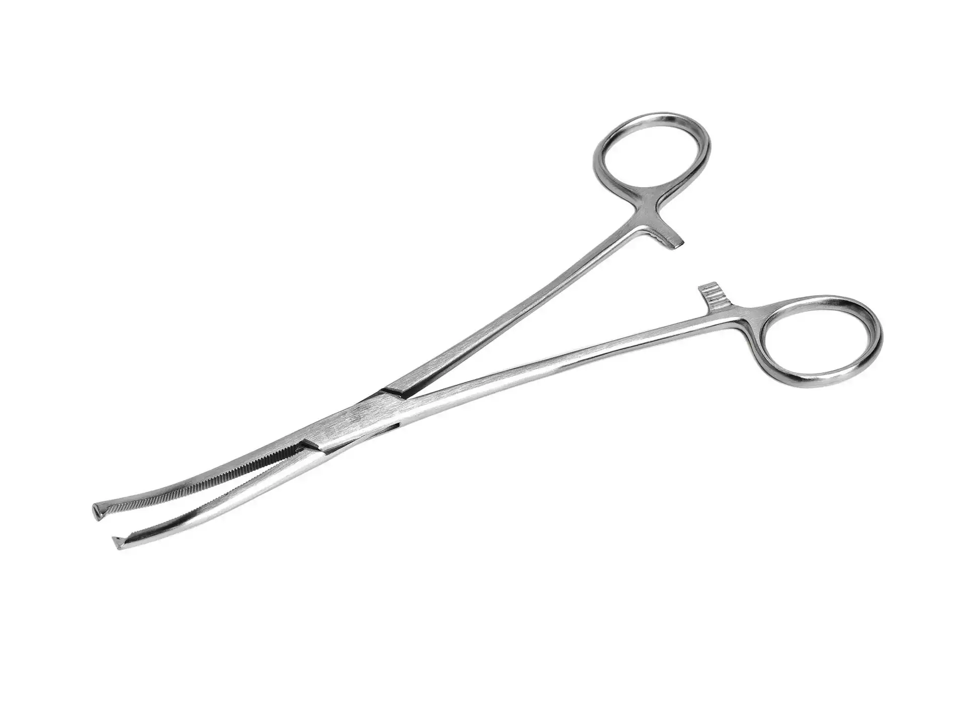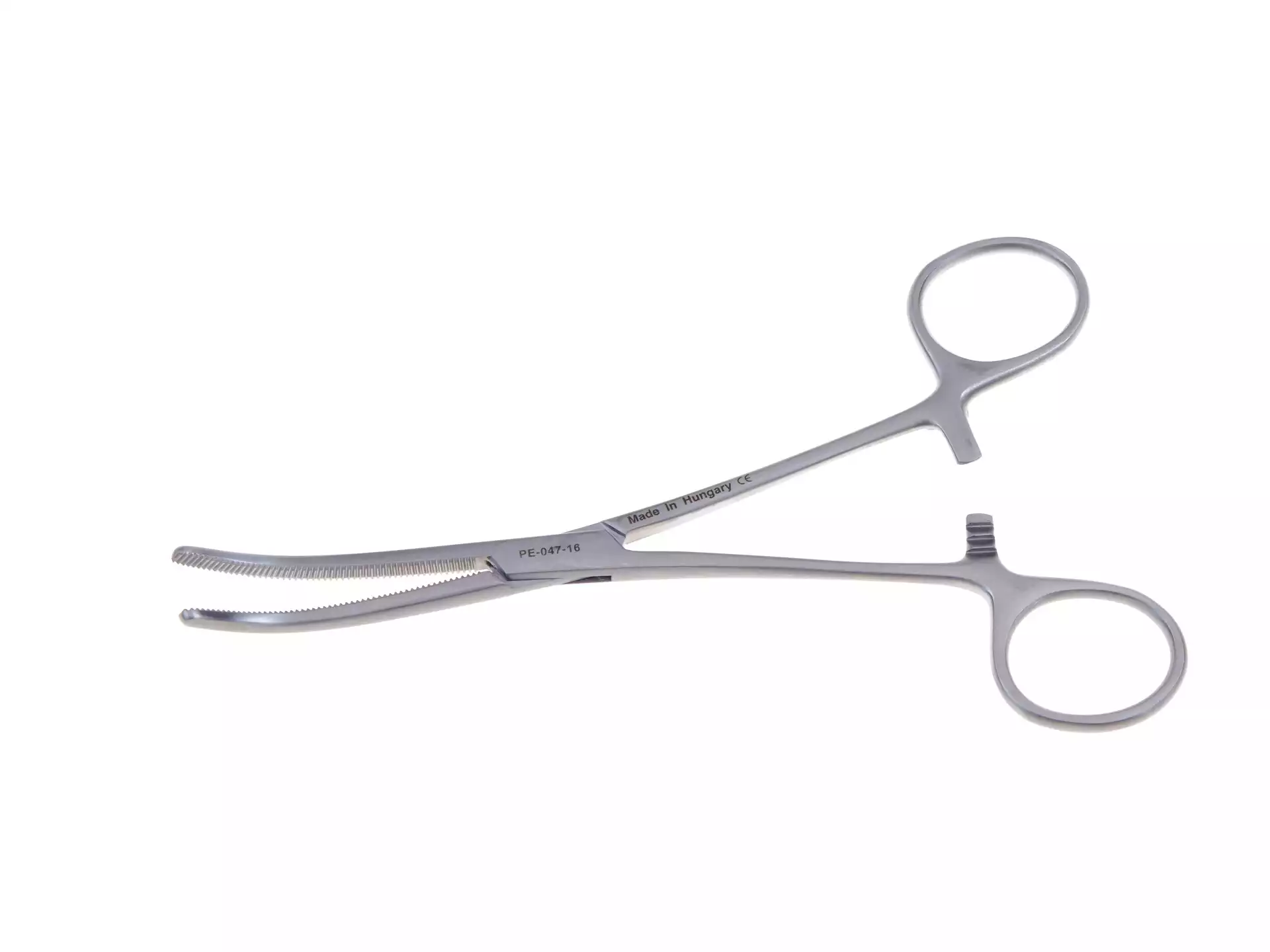 Зажим кровоостанавливающий (РЕ-047-16) зубчатый изогнутый, №1, длина 158мм, многоразовый, MEDICOR MEDITU Kft (ВЕНГРИЯ)