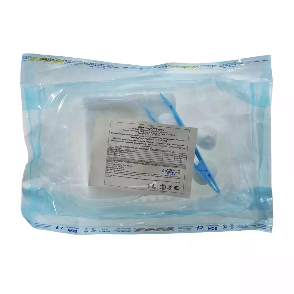 Комплект "ДиалМед" для повязок (салфетка 5*5см, пинцет, тампон) , одноразовый стерильный, ДиалМед МК (РОССИЯ)