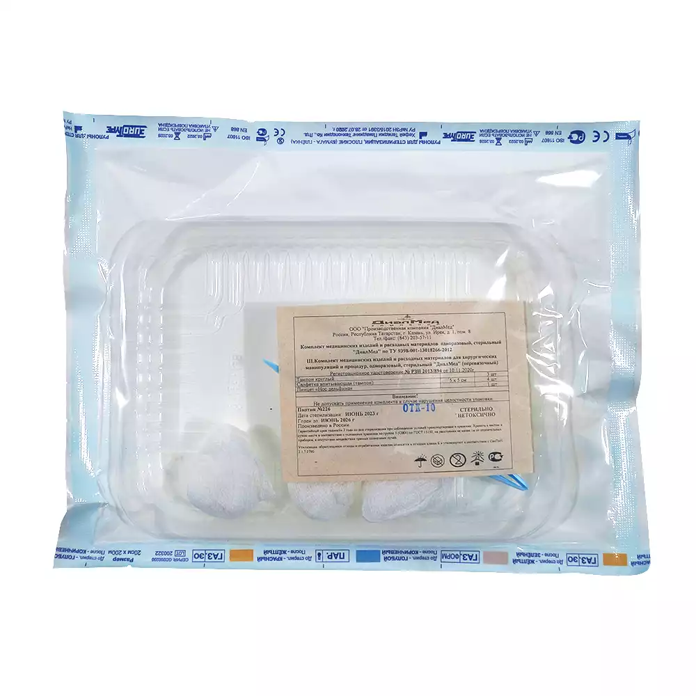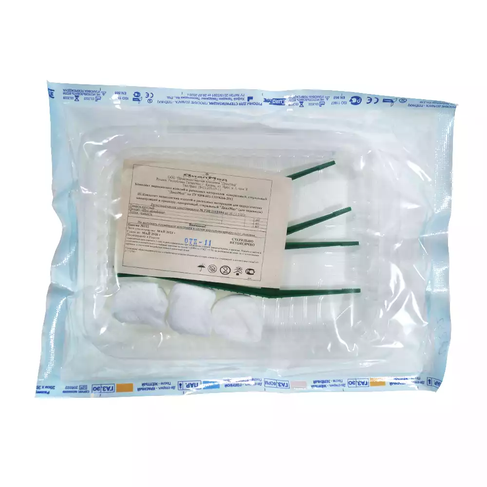 Комплект "ДиалМед" для перевязок и ухода за ранами (пинцет, тампоны) , одноразовый стерильный, ДиалМед МК (РОССИЯ)