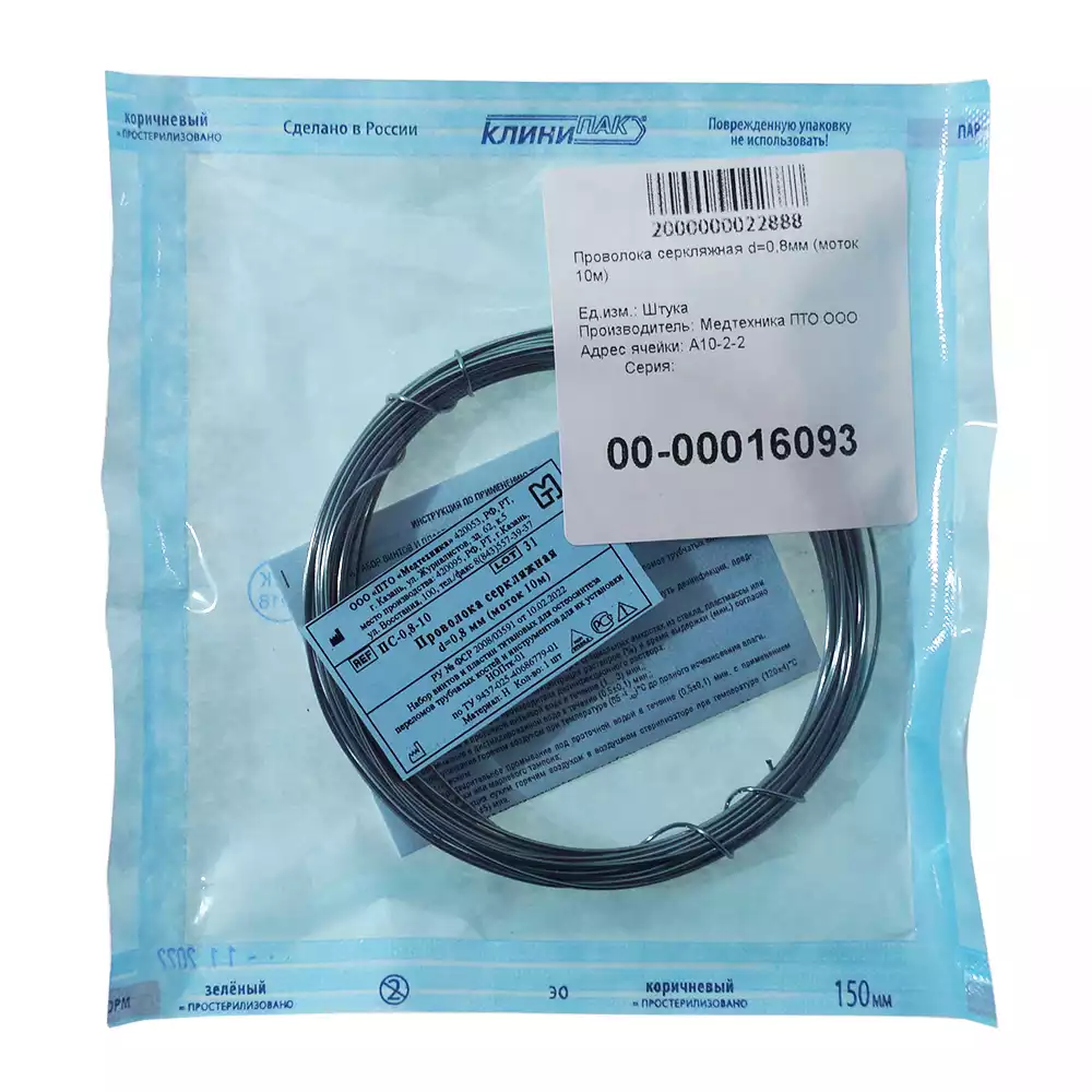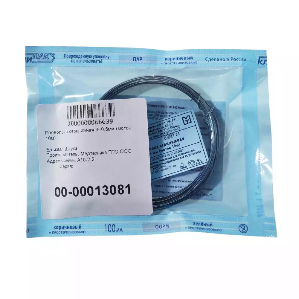 Спица для скелетного вытяжения, гладкая, размер 0,8х100мм, Медтехника ПТО (РОССИЯ), 100 шт